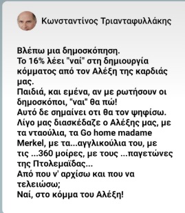 Το 16% λέει "ναί" στη δημιουργία κόμματος από τον Αλέξη της καρδιάς μας.