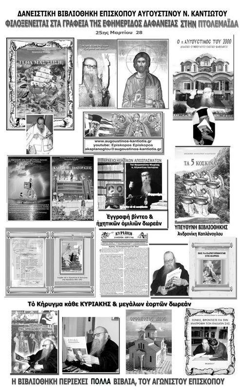 ΔΑΝΕΙΣΤΙΚΗ ΒΙΒΛΙΟΘΗΚΗ ΕΠΙΣΚΟΠΟΥ ΑΥΓΟΥΣΤΙΝΟΥ Ν. ΚΑΝΤΙΩΤΟΥ ΦΙΛΟΞΕΝΕΙΤΑΙ ΣΤΑ ΓΡΑΦΕΙΑ ΤΗΣ ΕΦΗΜΕΡΙΔΟΣ ΔΑΦΑΝΕΙΑΣ ΣΤΗΝ ΠΤΟΛΕΜΑΪΔΑ 18/11/2025 Πηγή: Συντακτική ομάδα PtolemaidaNews.gr