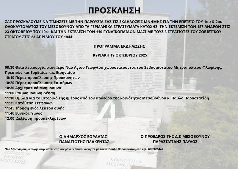 Εκδήλωση μνήμης Μεσόβουνο 1942 – 2025